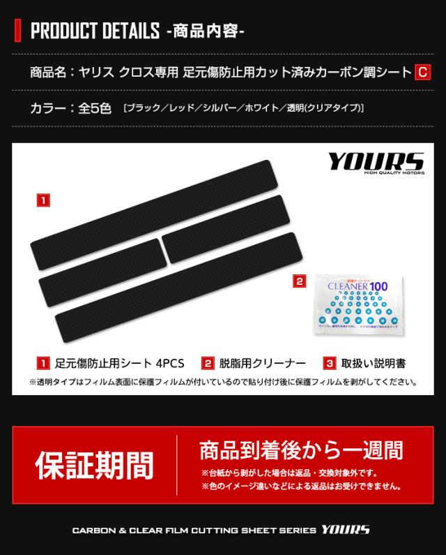 [対象商品10%OFFクーポン発行中][C]ヤリスクロス専用 足元傷防止用カット済みフィルム 4PCS 全5色 YARIS CROSS カーボン 透明フィルム カッティング シール [5]-4