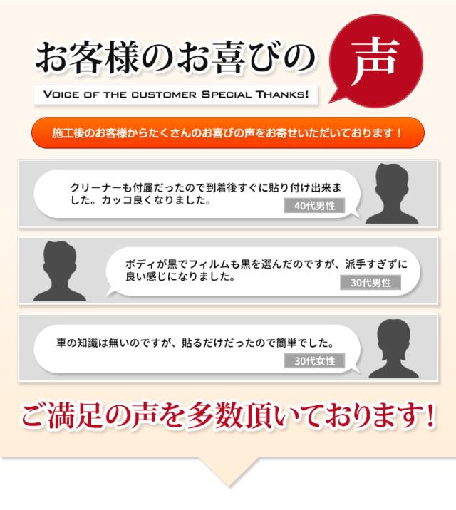Q.上手に貼るコツはありますか?A.貼り付ける前に仮合わせを行い、貼り付け場所の確認をしっかりとしてください。Q.貼った後すぐに洗車しても大丈夫ですか?