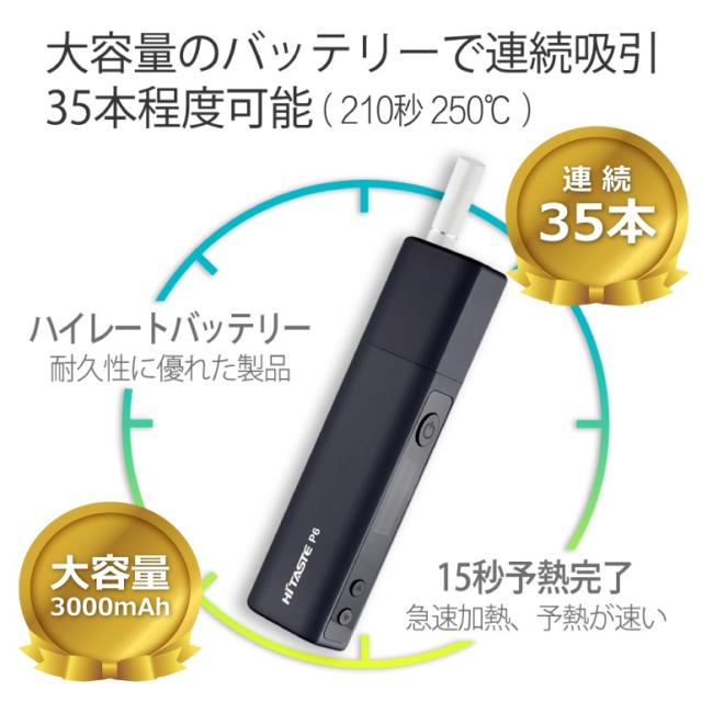 アイコス 互換機 加熱式タバコ Hitaste P6 アイコス互換 35本連続吸引 バイブ付 自動清潔 IQOS互換機 自由な温度調整 連続35本 オートクリーン 送料無料