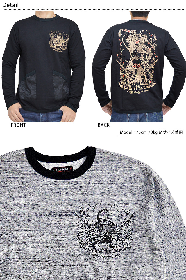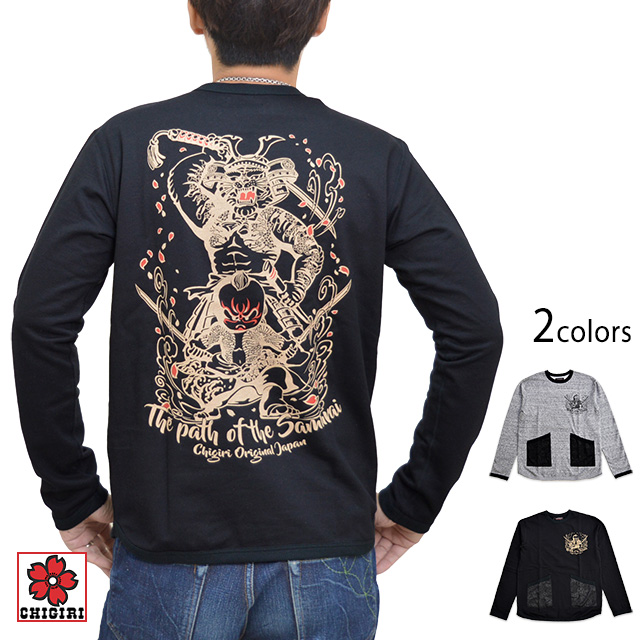 ちぎり&タイガー侍ポケット付きミニ裏毛長袖Tシャツ CHIGIRI CHL43-791 和柄 和風 チギリ 虎 ロングTシャツ ロンT