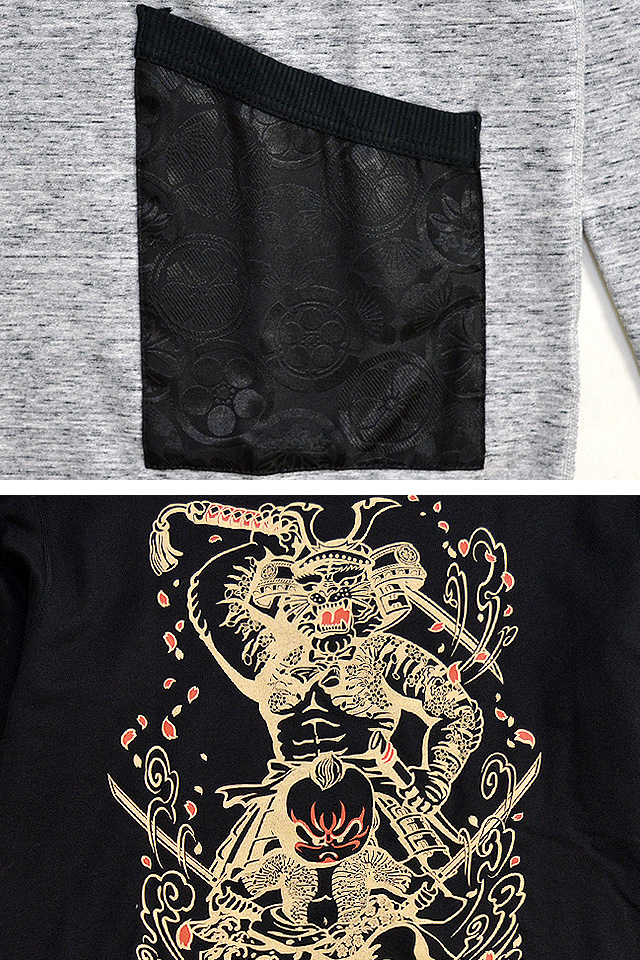 CHIGIRIさんから、「ちぎり&タイガー侍ポケット付きミニ裏毛長袖Tシャツ(CHL43-791)」のご紹介です。 武士に扮した二刀流のちぎりちゃんに斬りかかろうとするタイガー侍を、背中に落とし込みました。 バックにしっかり柄を入れている分、フロントはシンプルにデザインし、メリハリを付けました。 ボディーには、ミニ裏毛のややしっかりとしたTシャツ生地を採用。 | |||||||||||||||||||||||||