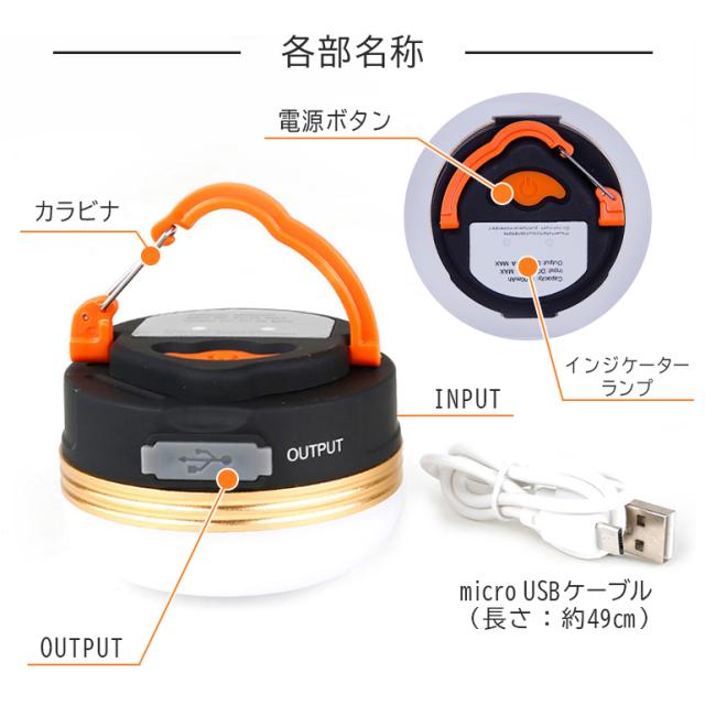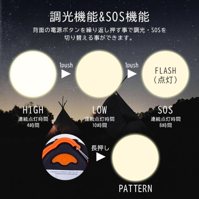 LEDランタン キャンプ 暖色 LEDライト アウトドア ライト モバイルバッテリー USB充電式 3モード 調光 コンパクト 小型 吊り 防災 レジャー 停電対策 送料無料
