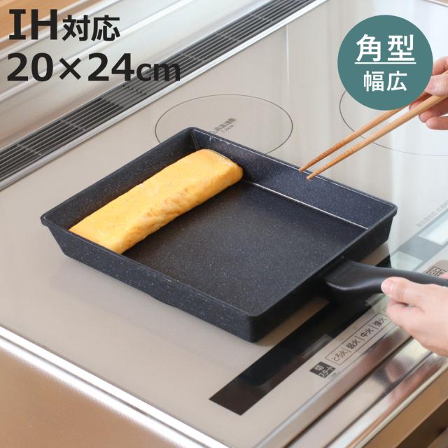 四角いフライパン 20×24cm IH対応 ランチーニ 底広 角型 ( ガス火対応 玉子焼き器 卵焼き器 四角 スクエアパン アルミ製 角型フライパン ネオマーブル ふっ素樹脂加工 玉子焼きフライパン エッグパン 卵焼き 玉子焼き フライパン )