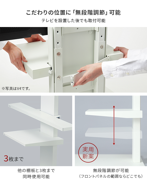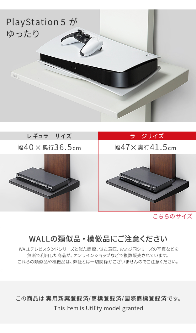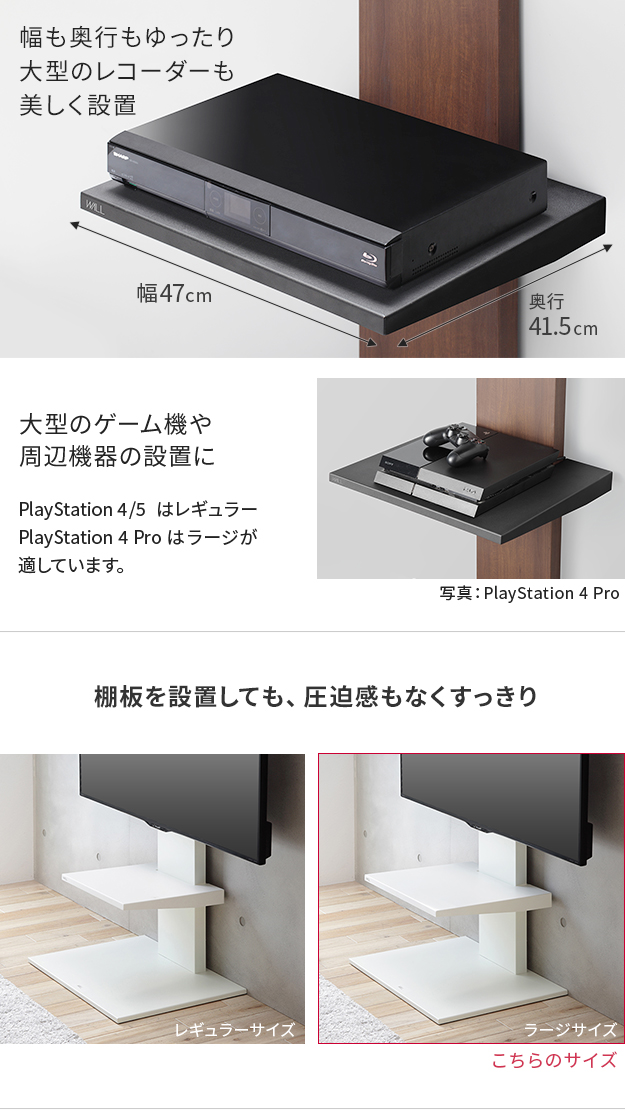 WALL(ウォール) インテリアテレビスタンドV2・V3・V5・S1対応 棚板 ラージサイズ ホワイト ブラック テレビ台 テレビスタンド