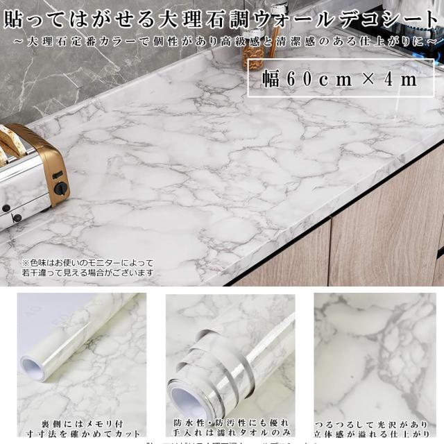 大理石シート 大理石シール 簡単 リメイクシート 壁紙シール 耐熱シート ウォールステッカー 模様替え 60cmX4m リフォーム DIY インテリア キッチンシート おしゃれ 北欧 テーブル 家具 床 カッティングシート