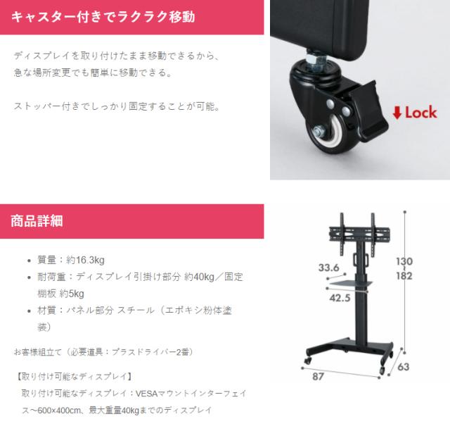 テレビスタンド テレビ台 モニター TVスタンド モニタースタンド モニター ディスプレイスタンド UTS-S8718S アイリスオーヤマ テレワーク 在宅勤務 ディスプレイ スタンド 高さ調節 角度調節 キャスター付き ストッパー 送料無料