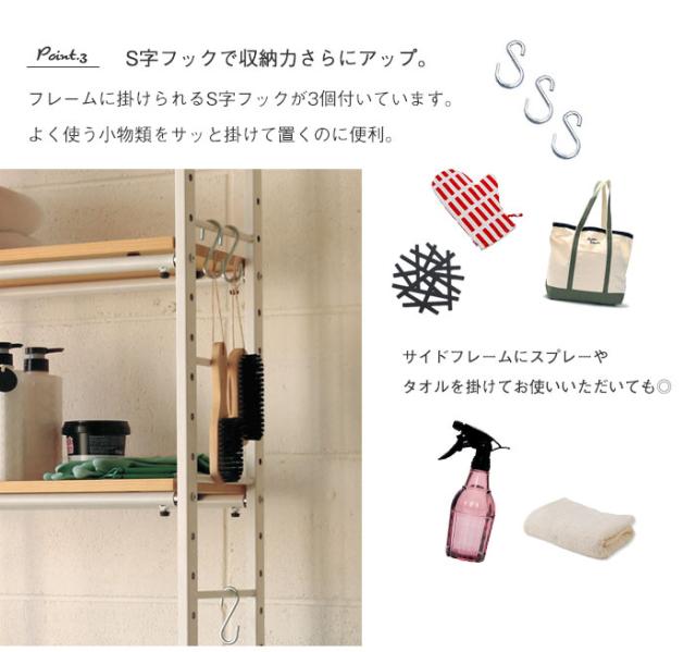 S字フックが3個付いているので、ちょっとしたものを掛けておくのに便利。