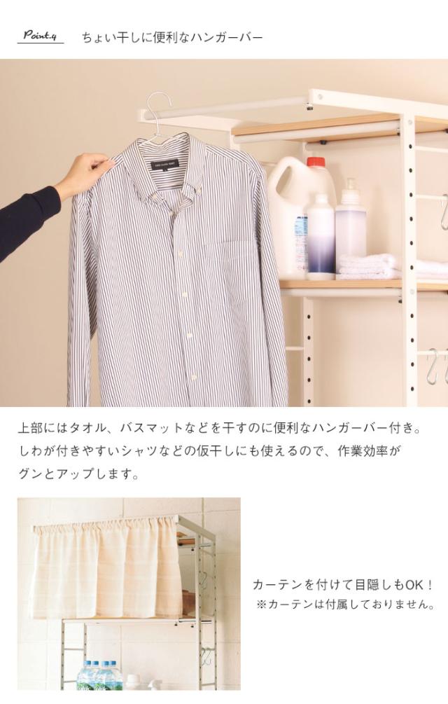 上部のバーはハンガー掛けとして使ったり、目隠し用のカーテンを取り付けるときに便利。(※カーテンは付属しておりません)