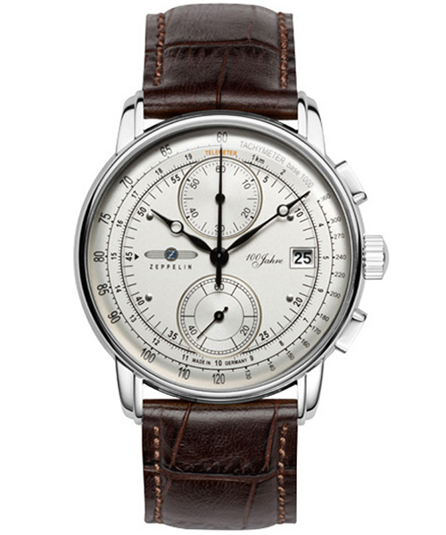 ツェッペリン LZ1 100周年記念モデル 7680-1N メンズ 腕時計 クオーツ レザー ホワイト クロノグラフ