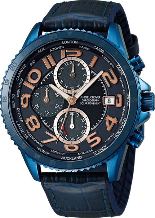 エンジェルクローバー ダブル プレイ ソーラー DPS38PNV-NV メンズ 腕時計 革ベルト ネイビー クロノグラフ トノー