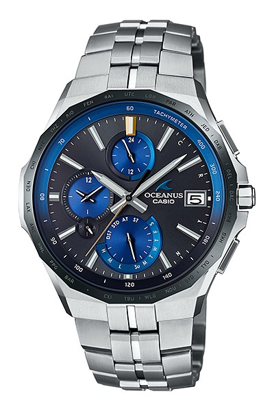 デザイン面では、スマートフォンと連携し都市情報をスマートフォン側で管理し、都市コードをベゼルに表記したことにより、すっきりとしたフェイスデザインで高い視認性を確保。ケースからバンドを流れるように繋がる曲線に変更したことで、より一層エレガントなシルエットを実現。また、マンタならではの16面体にカットされた多角形のベゼルを採用し、耐摩耗性にすぐれるDLC加工を施した、上質で精悍なブラックベゼルを組み合わせました。
