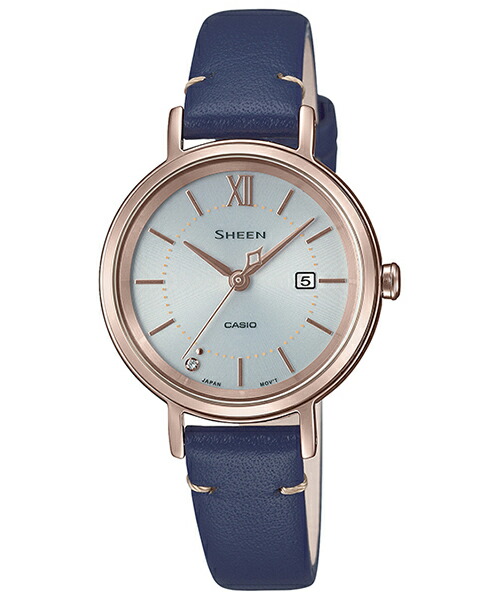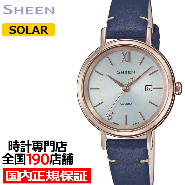 カシオ シーン SHS-D300CGL-7BJF レディース 腕時計 ソーラー 革ベルト ネイビー