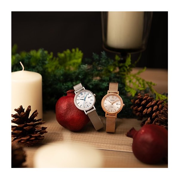ミラネーゼバンドタイプからシルバーとピンクゴールドの2モデル、革バンドタイプからネイビーとホワイトの2モデルをそれぞれラインアップ。