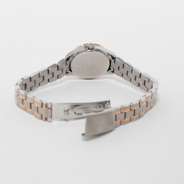 デザインの特徴として、シルバーのブレスにピンクゴールドのラインは控えめな華やかさとエレガントなアクセントもプラスしてくれます。