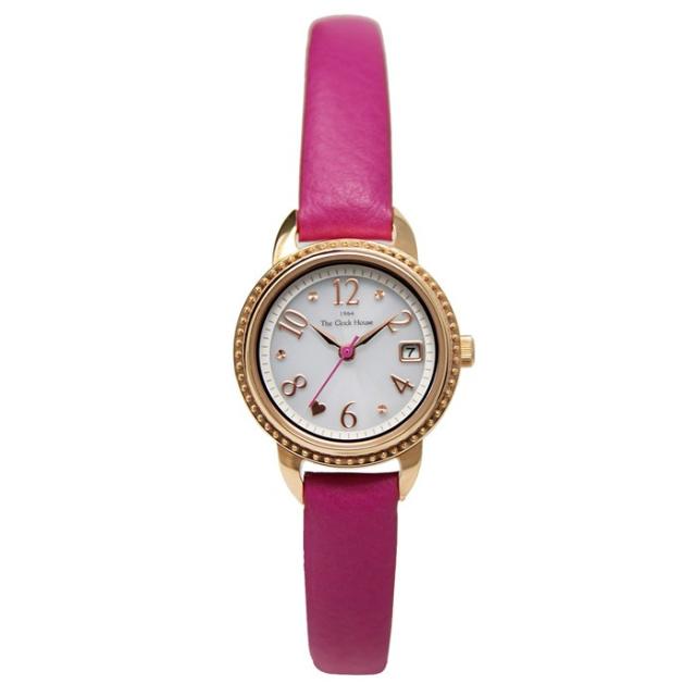 ザ・クロックハウス 腕時計 レディース ソーラー ホワイト ピンク 革ベルト 秒針 日付 おしゃれ フェミニン カジュアル LFC1001-WH3B 雑誌掲載