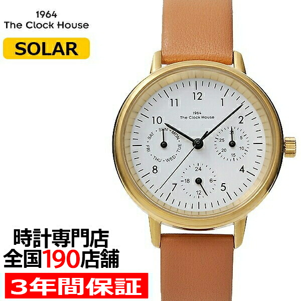 商品名:ザ・クロックハウス LNC1002-WH3B ナチュラルカジュアル ソーラー レディース 腕時計 雑誌掲載 茶革ベルト かわいい 日付 曜日 THE CLOCK HOUSE Casual SOLAR