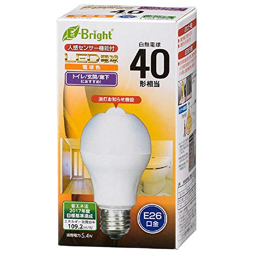 オーム電機 【消灯お知らせ機能搭載】LED電球(40形相当/590lm/電球色/E26/人感・明暗センサー付) LDA5L-H R21