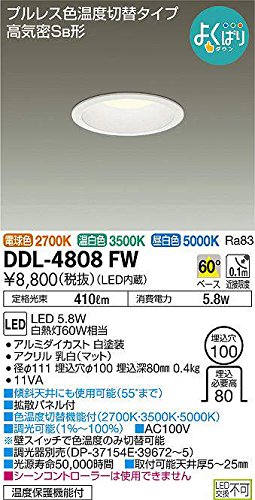 (中古品)大光電機(DAIKO) LEDダウンライト (LED内蔵) LED 5.8W 電球色 2700K 温白色 3500K 昼白色 5000K DDL-4808FW/大光電機/DDL-4808FW/大光電機/大光電機(DAIKO) LEDダウンライト (LED内蔵) LED 5.8W 電球色 2700K 温白色 3500K 昼白色 5000K DDL-4808FW/
