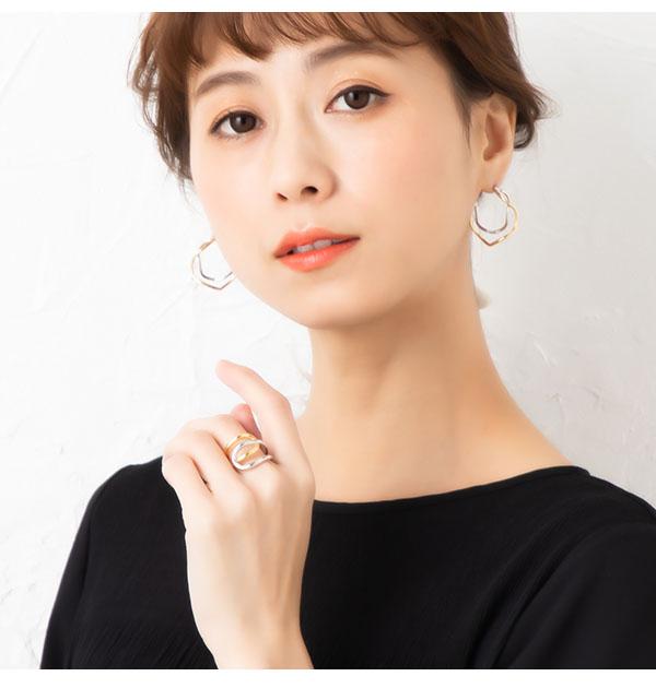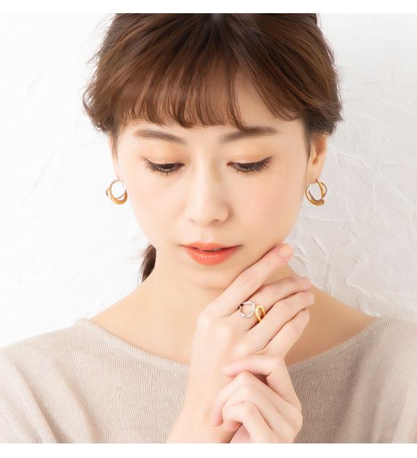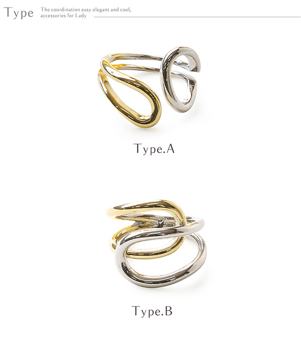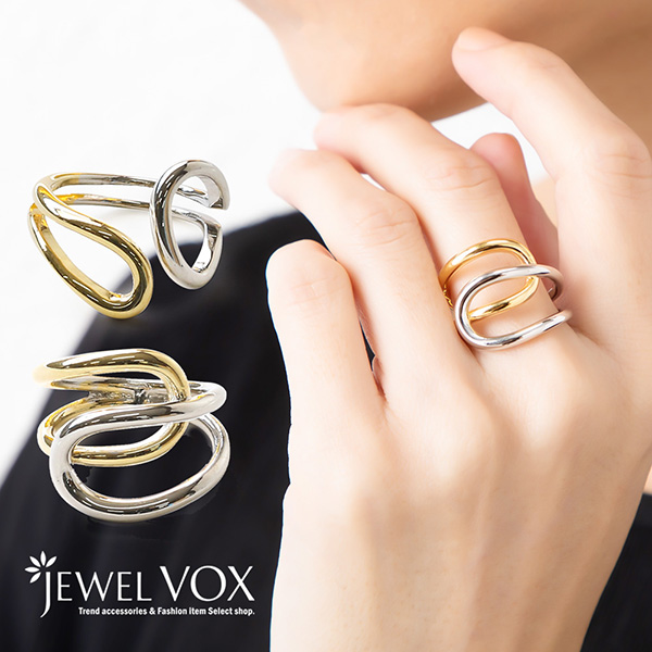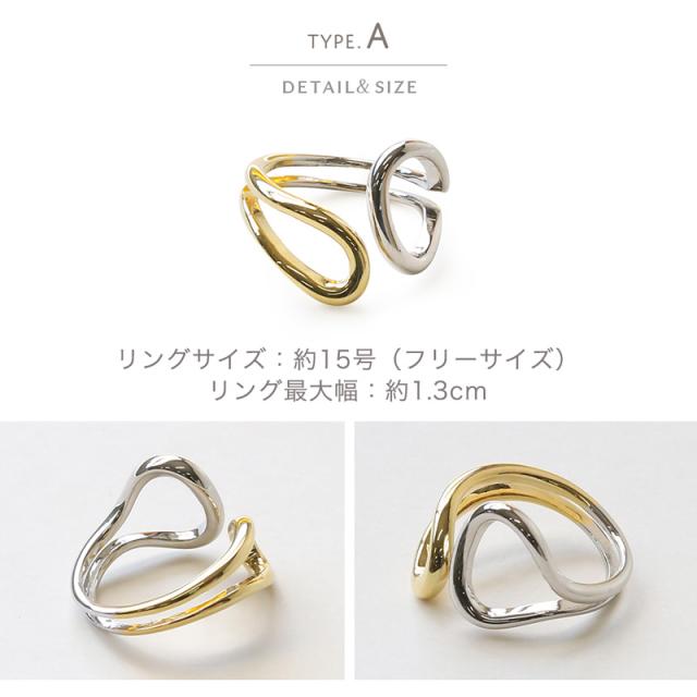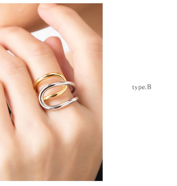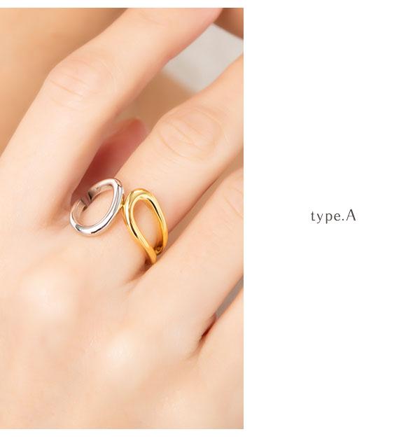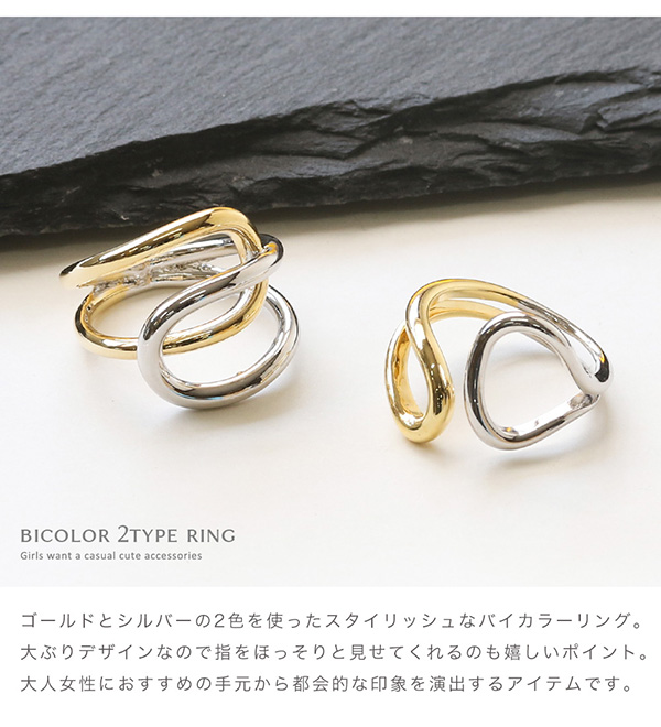 指輪 レディース リング 金属アレルギー バイカラー デザイン 15号 13号 レイヤード風 2デザイン 2種類 2タイプ 重ねづけ 重ね着け 重ね付け ゴールド シルバー 金 銀 ニッケルフリー 安心 カジュアル トレンド シンプル 女性