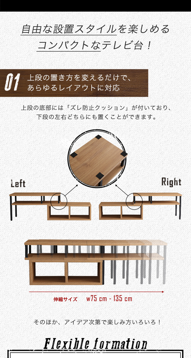 アイアン×木目でヴィンテージ感 伸縮テレビ台 送料無料 コンパクト テレビボード ローボード おしゃれ 32型 一人暮らし 安い 激安 リビングボード