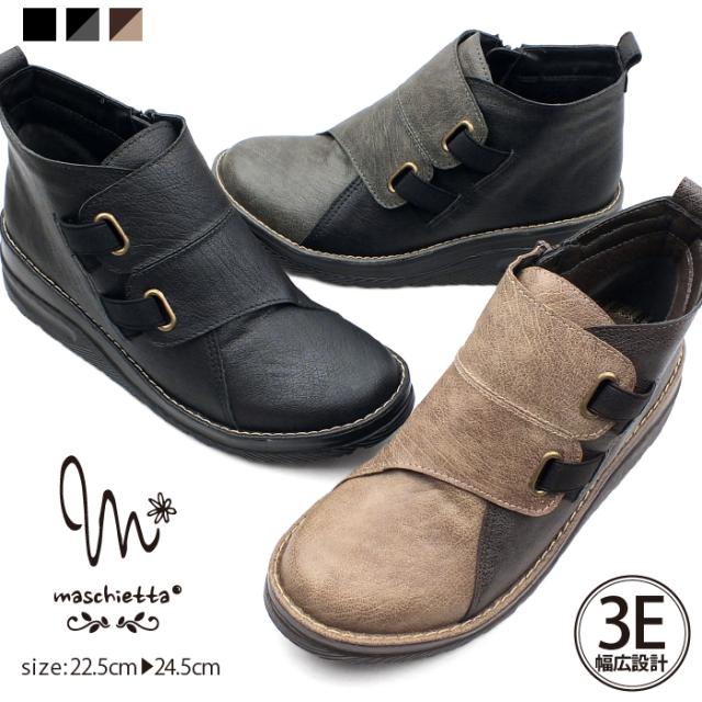 maschietta-マスチェッタ-ショートブーツ ダブルモンクストラップ 3E 幅広設計 外反母趾対策 超軽量 超屈曲 痛くない ショートブーツ 履きやすい 靴 レディース プレゼント ギフト 足元ゆったり外反母趾対策3Eダブルモンクストラップショートブーツ