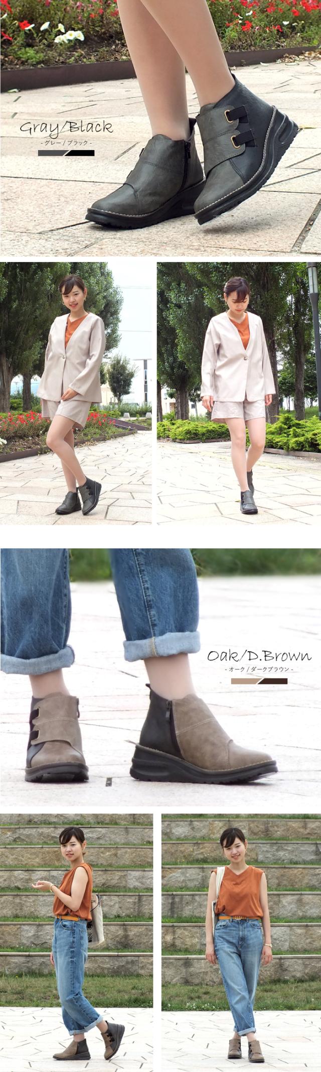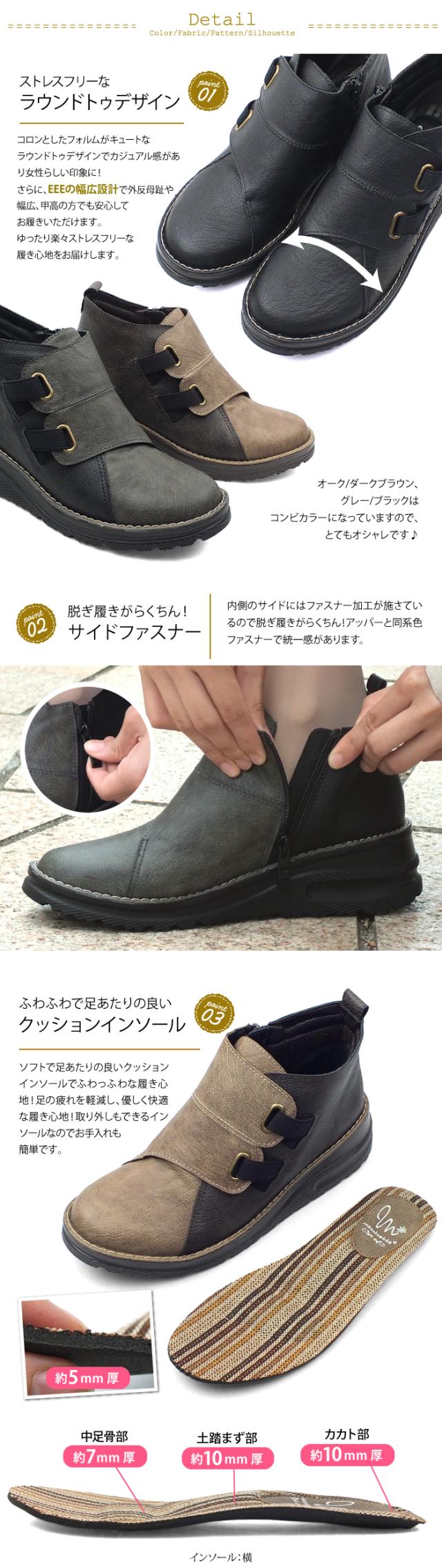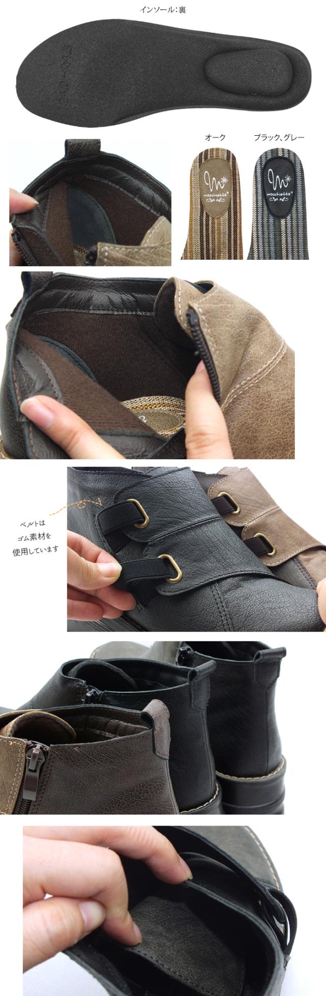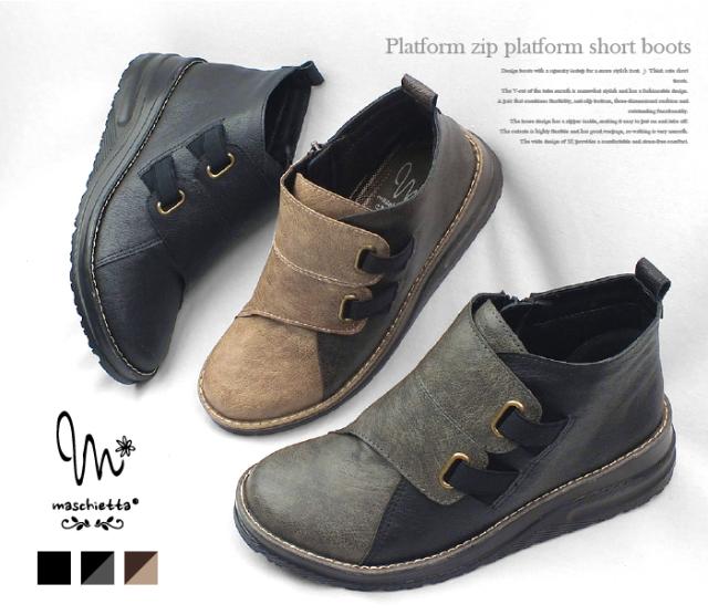 maschietta-マスチェッタ-コンビカラーがおしゃれなサイドジップの厚底ショートブーツ。屈曲性、防滑底、立体クッションと抜群な機能性を兼ね備えた1足!ゆったり設計で内側にファスナーが付いていますので、脱ぎ履きしやすいです。屈曲性抜群のしなやかで反りの良いアウトソールなので歩行がとても滑らか。3Eの幅広設計でゆったり楽々ストレスフリーな履き心地をお届けします。ブラック/ブラウン/グレー/オークの4カラーバリエーション