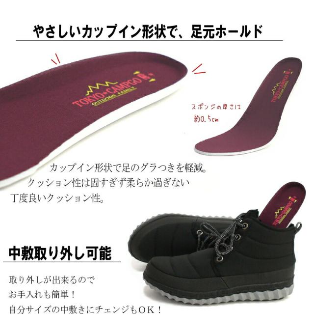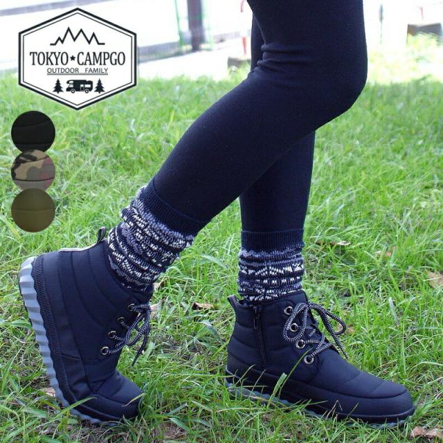 TOKYO CAMPGO フラットショートブーツ 靴 レディース キャンプ アウトドア ウォーキング 旅行 撥水 防滑 抗菌 防臭 ナイロン ブラック 迷彩 カーキー レースアップ 3e 秋 冬