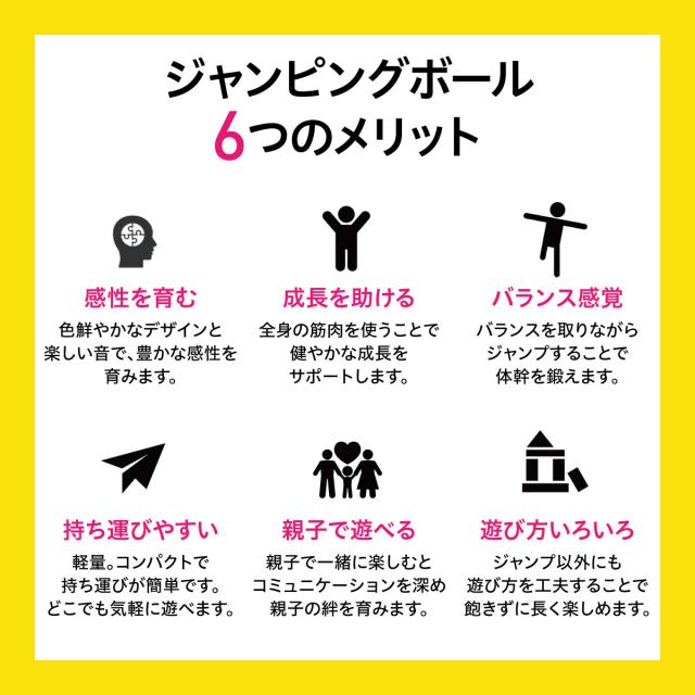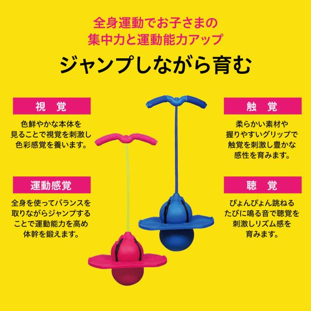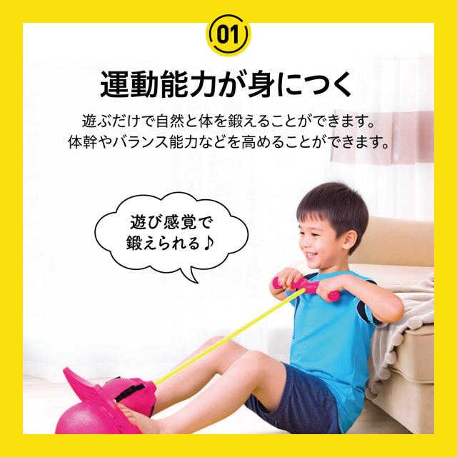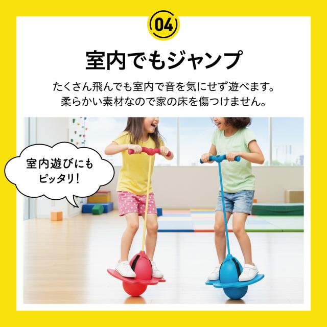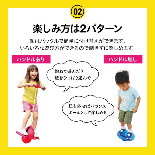 グリップを持ってジャンプ!ボールで地面を飛び跳ねる楽しさに子供達も夢中になります。