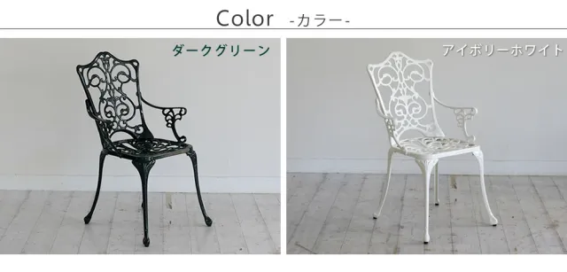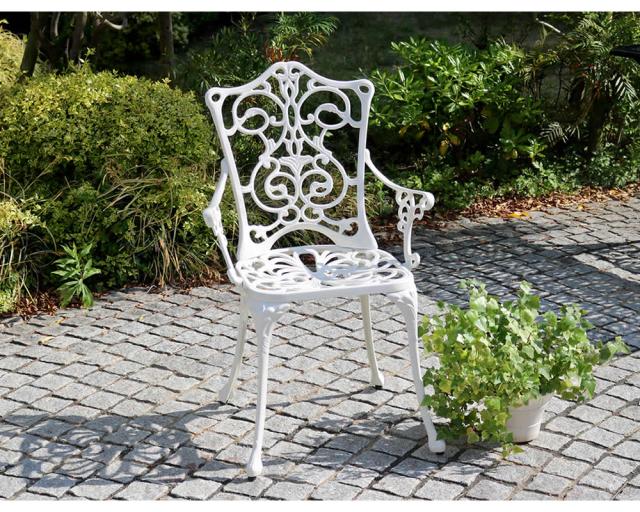 鋳物の高級感 アルミ製 ガーデンチェア 送料無料 屋外 ガーデン椅子 おしゃれ アンティーク 雨ざらし 肘付き イングリッシュガーデン ガーデンファニチャー エクステリア 屋外用 椅子 高級 アルミ ホワイト 白 ダークグリーン 肘あり