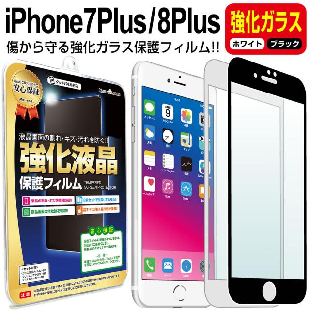 【強化ガラス】 iPhone8 Plus / iPhone7 Plus ガラス保護フィルム 保護フィルム iPhone iphone 8 7 plus アイフォン 8 7 プラス + ブラック ホワイト 白 黒 ガラス 液晶 保護 フィルム シート 画面 傷 キズ カバー ina
