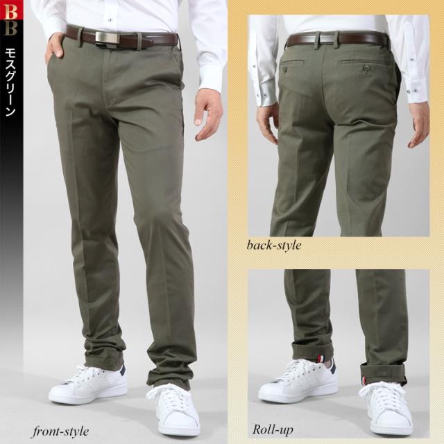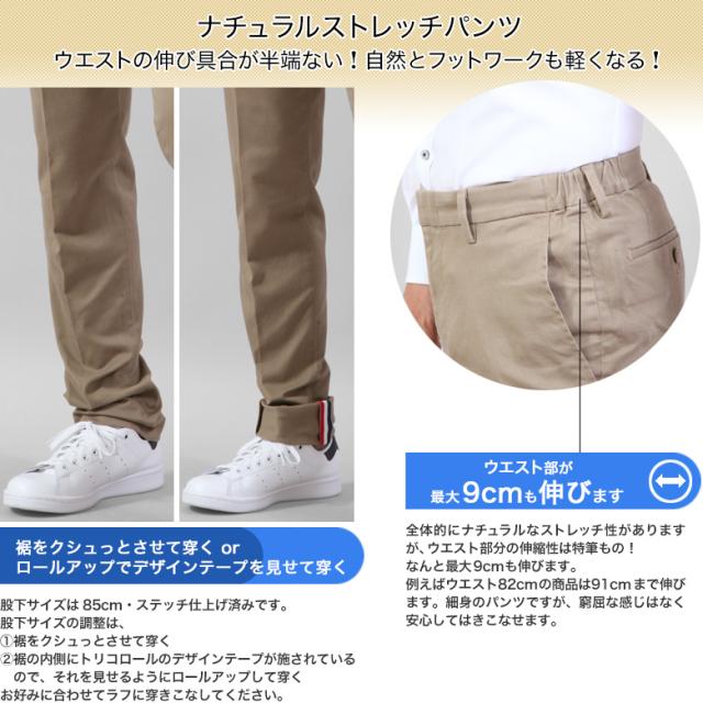 コットンパンツ ストレッチパンツ ノータック 秋冬 メンズ ウエストが最大9cm伸びる 送料無料【クロネコゆうパケット】