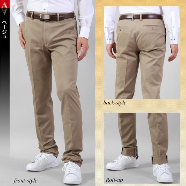 ウエスト部を含む全方向のストレッチ性・裾の仕上げが洒落たコットンスリムパンツ