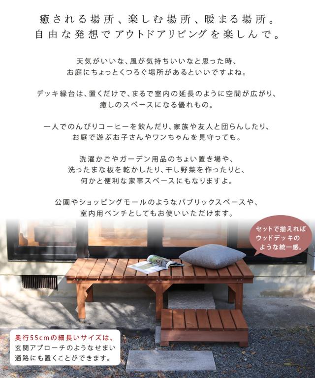 天然木 ステップ付き 縁台 155×55 送料無料 ウッドデッキ おしゃれ 木製 縁側 踏み台 ベンチ 縁側台 縁側デッキ 安い DIY 安い ユニット縁台ベンチ 置くだけ 置き型