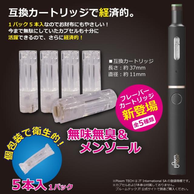 プルームテックプラス 互換カートリッジ Ploom TECH + 無味無臭 無香料 メンソール リキッド ニコチンゼロ 新型 プルームテック プラス 5本セット 送料無料