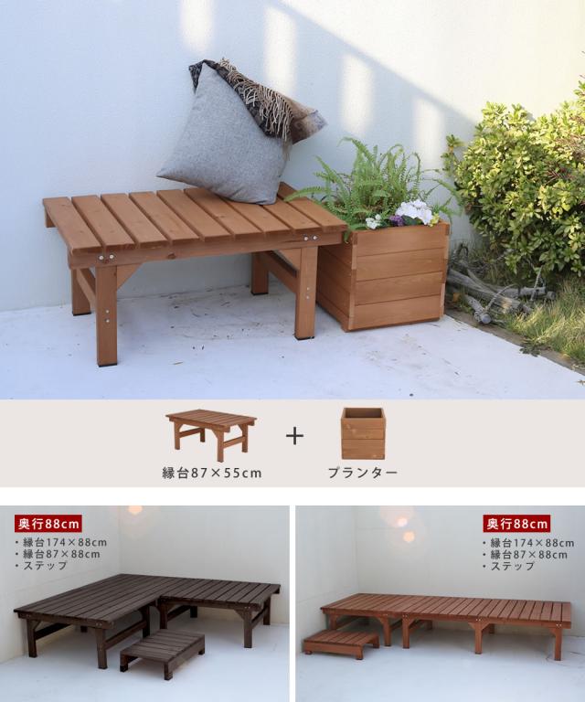 置くだけ 簡単設置 天然木 縁台 87×55 送料無料 ミニウッドデッキ 木製 コンパクト 縁側 おしゃれ DIY おしゃれ 小さい ユニットウッドデッキ