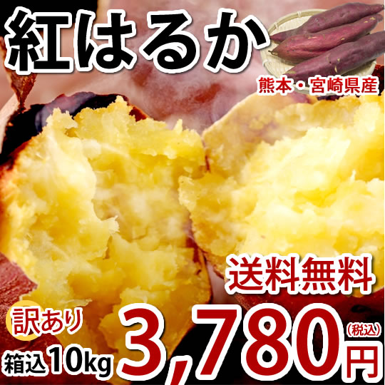 さつまいも 紅はるか 訳あり 10kg 箱込(内容量9kg+不良補償分500g) 送料無料 無選別 べにはるか 熊本・宮崎県産 サツマイモ 紅蜜芋 焼き芋 芋 いも