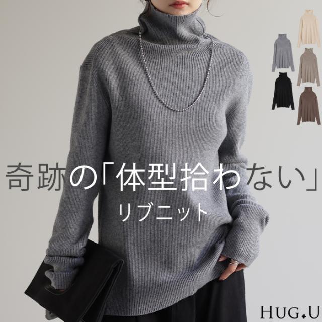 ボトルネック 小顔 長袖 ゆる ゆったり 無地 シンプル 体型カバー リブ 細リブ ニット タートルネック ボトルネック ハイネック 長袖 ミディアム ミドル丈 体型カバー ベーシック スタンダード 小顔 重ね着 着回し オーバーサイズ 大きめ 大きい オフィスカジュアル ブラック ブラウン ショコラ トープ グレー バニラ ホワイト オフホワイト ベージュ 黒 黒色 灰色 白 茶色 フリーサイズ S M L 2L LL XL 20代 30代 40代 50代 おしゃれ 母の日 お洒落 オシャレ かわいい 可愛い カワイイ HUG.U HUGU ハグユー はぐゆー