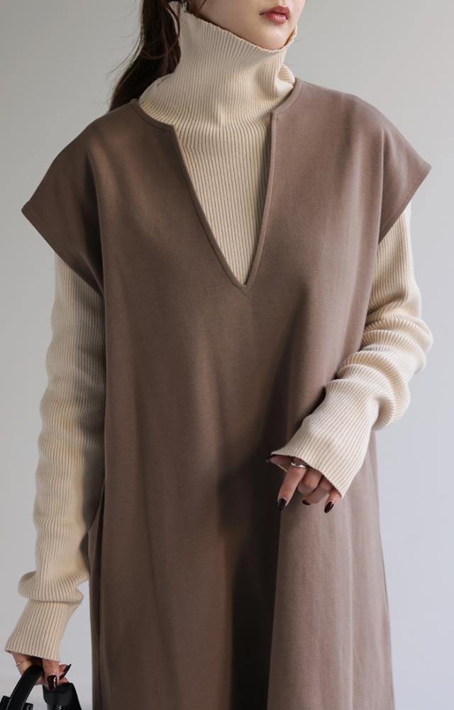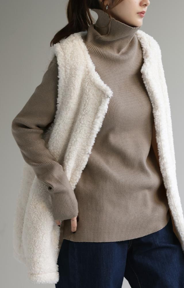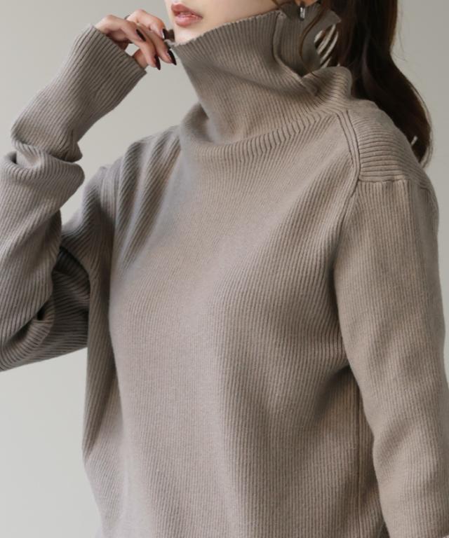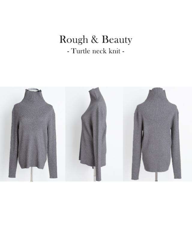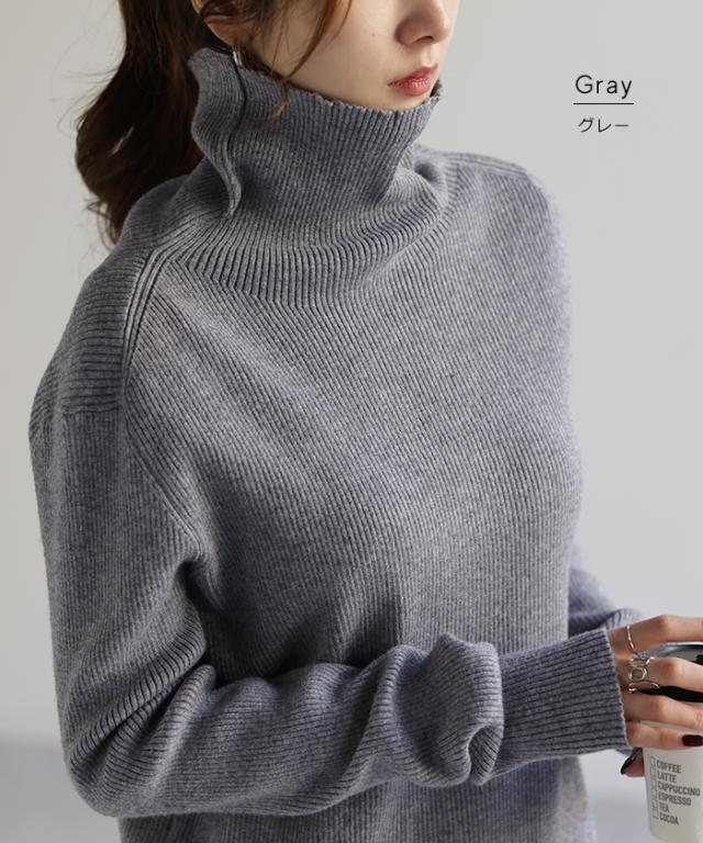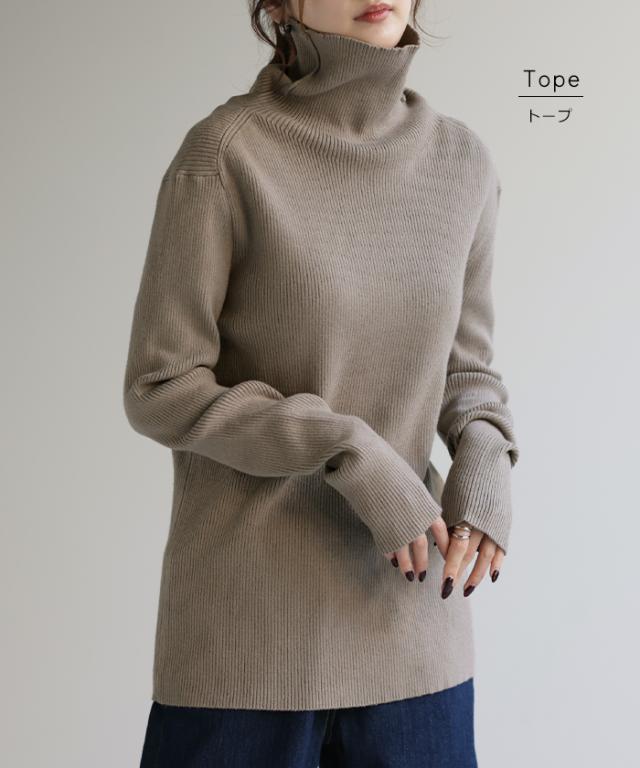 スッキリと細身えするリブ編みのタートルニット。