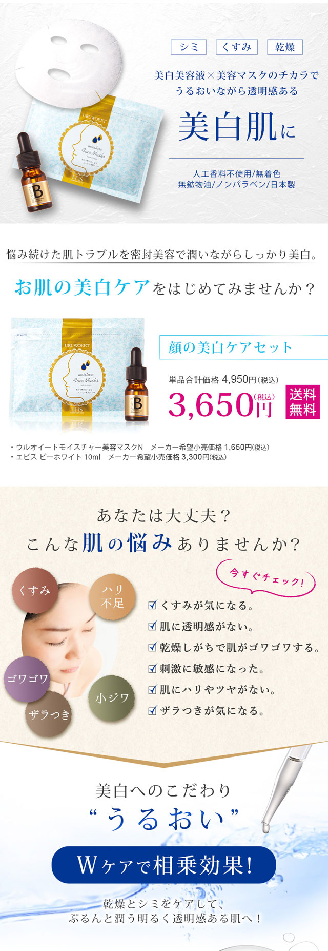 エビス〔ebis〕顔の美白ケアセット[エビス ビーホワイト:10ml・ウルオイートフェイスマスクN 36枚]