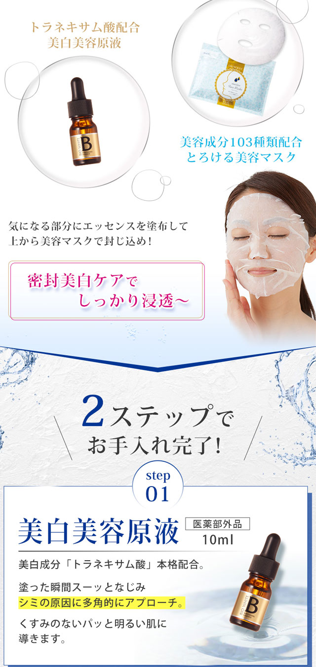 顔の美白ケアセット ビーホワイト 10ml ウルオイートフェイスマスクN 36枚 美白美容液 トラネキサム酸 パック プレゼント フェイスパック エビス ebis