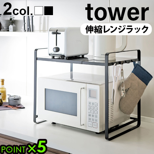 タワー 伸縮レンジラック tower 山崎実業 キッチンラック 電子レンジ 収納 電子レンジ上ラック 伸縮式 レンジ台 冷蔵庫上 レンジラック おしゃれ 隙間収納 デッドスペース ブラック ホワイト 黒 白 一人暮らし 便利 シンプル【送料無料★P5倍】