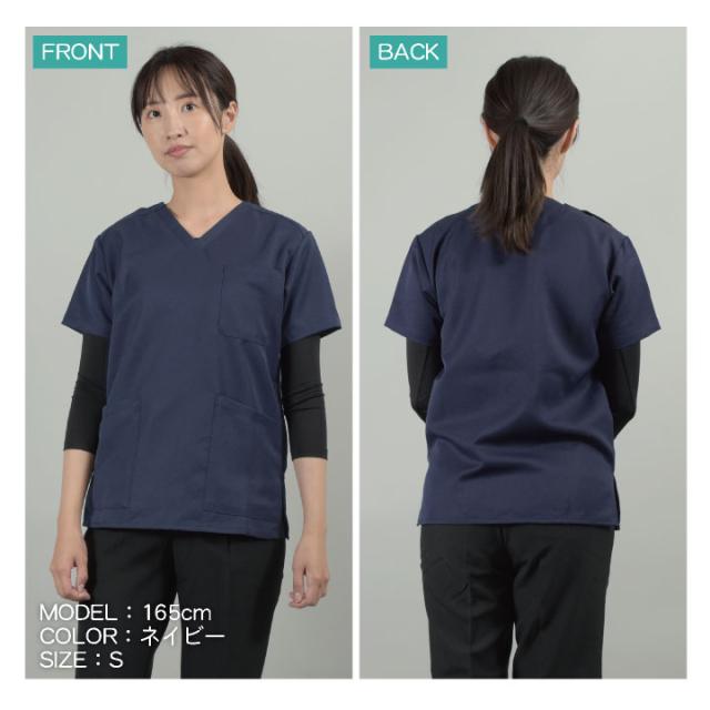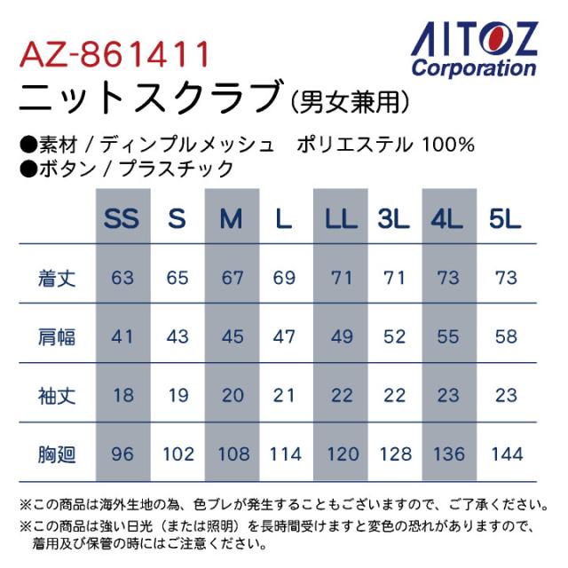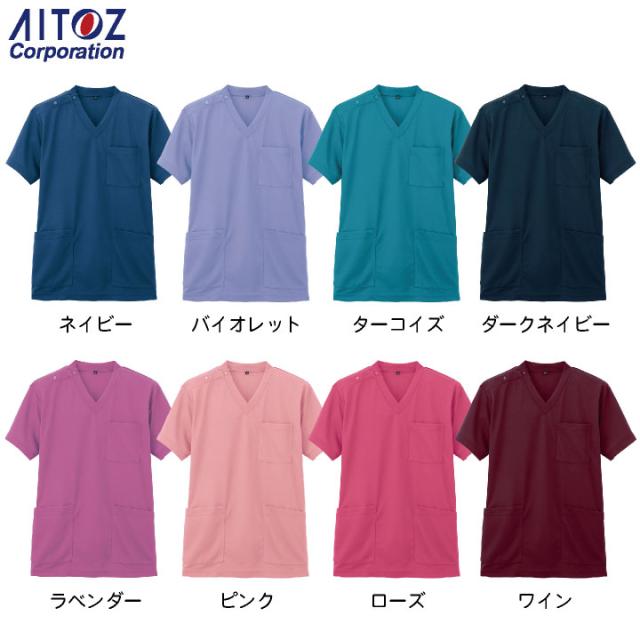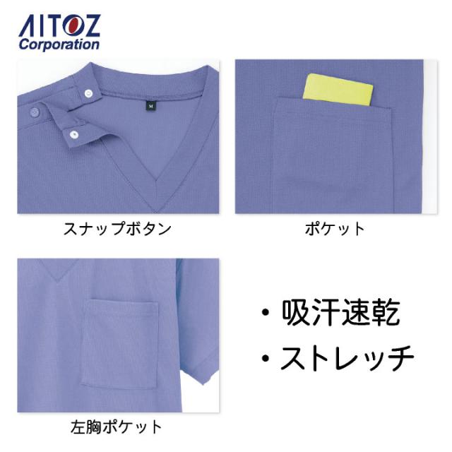 ニットスクラブ 男女兼用 ポリエステル ストレッチ 吸汗 速乾 裾スリット ポケット ドットボタン アイトス AITOZ スクラブ 半袖 az-861411