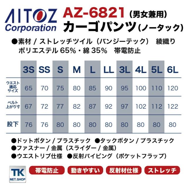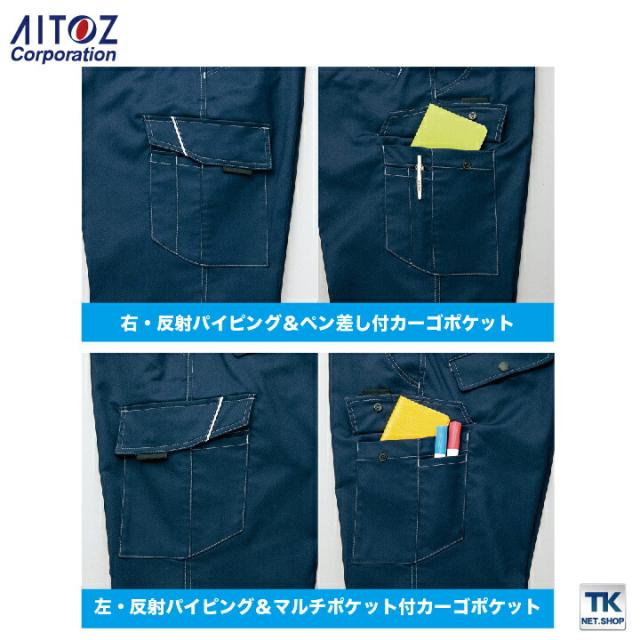カーゴパンツ 作業服 作業着 作業ズボン ワークパンツ 男女兼用 ストレッチ 帯電防止 ノータック 反射素材 アイトス 春夏 秋冬 az-6821-b