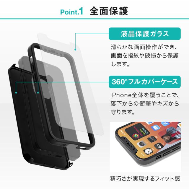 iPhone12ケース iPhone12Pro対応ケース (6.1インチ) 用 液晶画面保護ガラス1枚付き 360度全面保護のフルカバーケース【在庫限りセール】