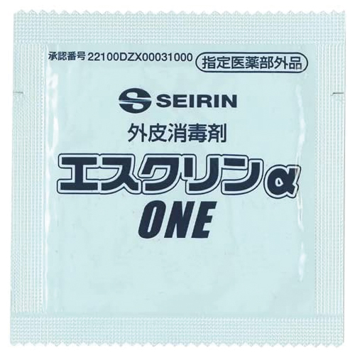 【あす着】 指定医薬部外品 エスクリンαONE 1包 - 80%エタノールを含浸した外皮消毒剤、使いやすいカットシート!【個包装で清潔!】