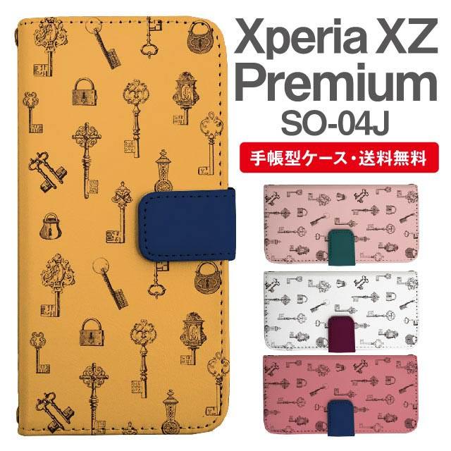 スマホケース 手帳型 Xperia XZ Premium エクスペリア SO-04J 携帯ケース カバー 送料無料 鍵柄 アンティーク agesugi_ssm