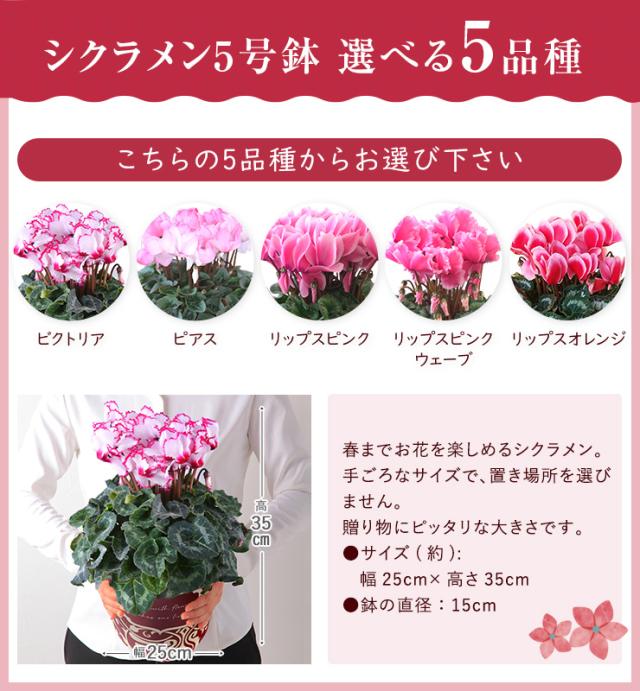 シクラメン 鉢植え 花 ギフト プレゼント 5種から選べる品種 お花 ビクトリア ピアス リップピンク リップオレンジ リップピンクウエーブ 5号鉢 鉢花 花鉢 しくらめん 5号 鉢 東北〜関西 送料無料 お歳暮 クリスマス 誕生日 フラワーギフト 冬ギフト 贈り物 花のギフト社
