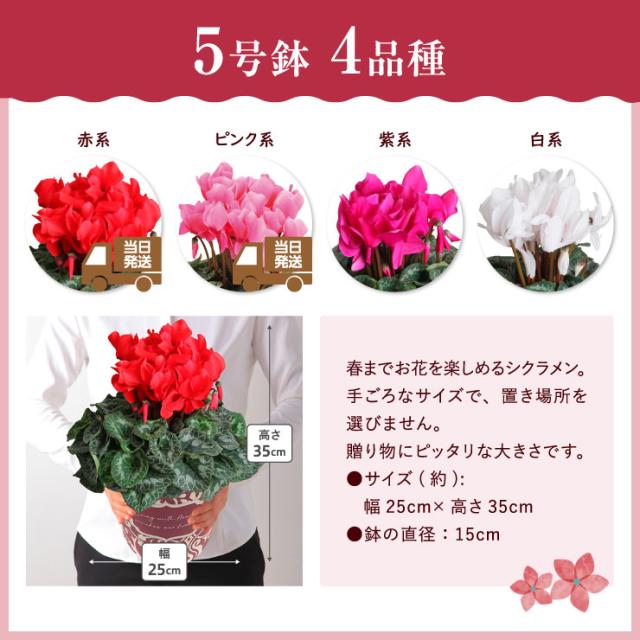 当日出荷14時まで シクラメン 5号鉢 鉢植え 花 ギフト プレゼント お花 赤 ピンク 紫 白 鉢花 花鉢 しくらめん 5号 鉢 東北〜関西 送料無料 お歳暮 クリスマス 誕生日 フラワーギフト 冬ギフト 贈り物 花のギフト社