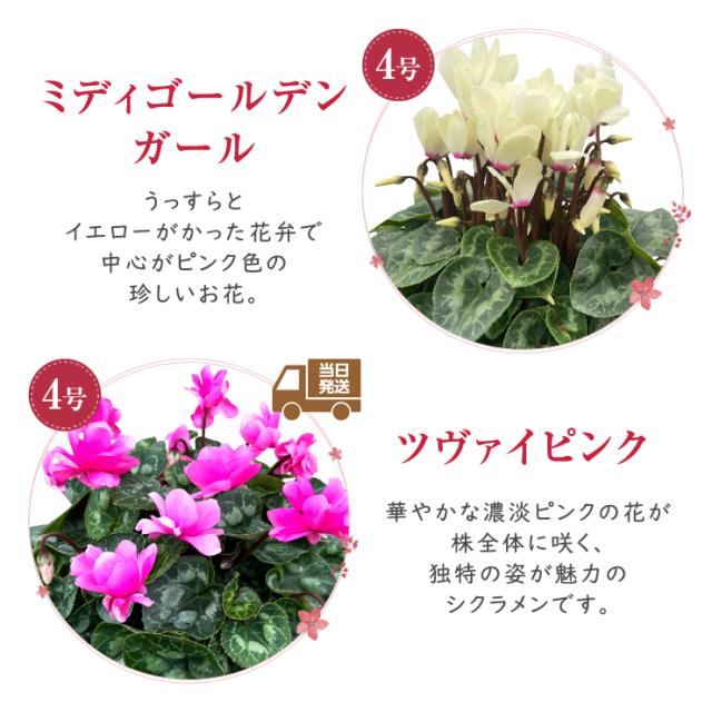 シクラメン鉢植え、ペーパー鉢カバー、シクラメンの育て方のしおり