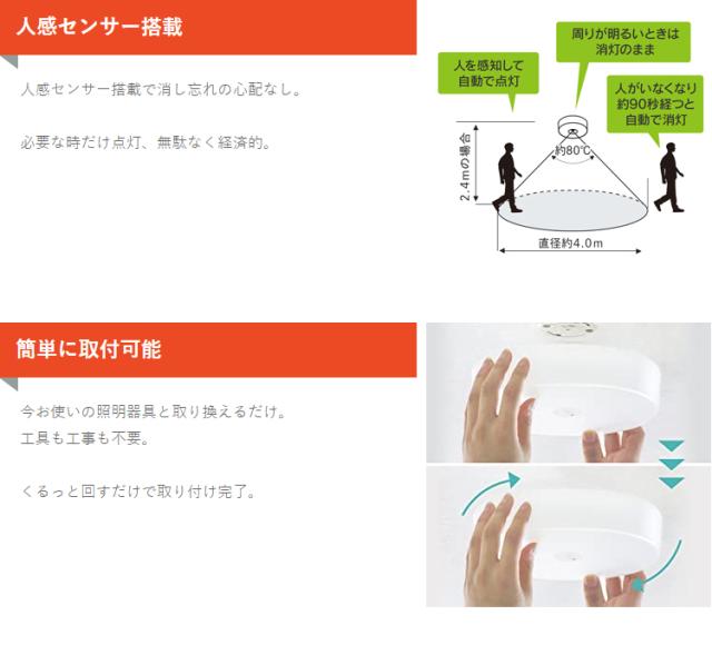 人感センサー搭載で、消し忘れの心配がありません。